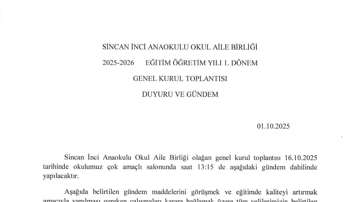 2025-2026 EĞİTİM ÖĞRETİM YILI 1.DÖNEM OKUL AİLE BİRLİĞİ GENEL KURUL TOPLANTISI